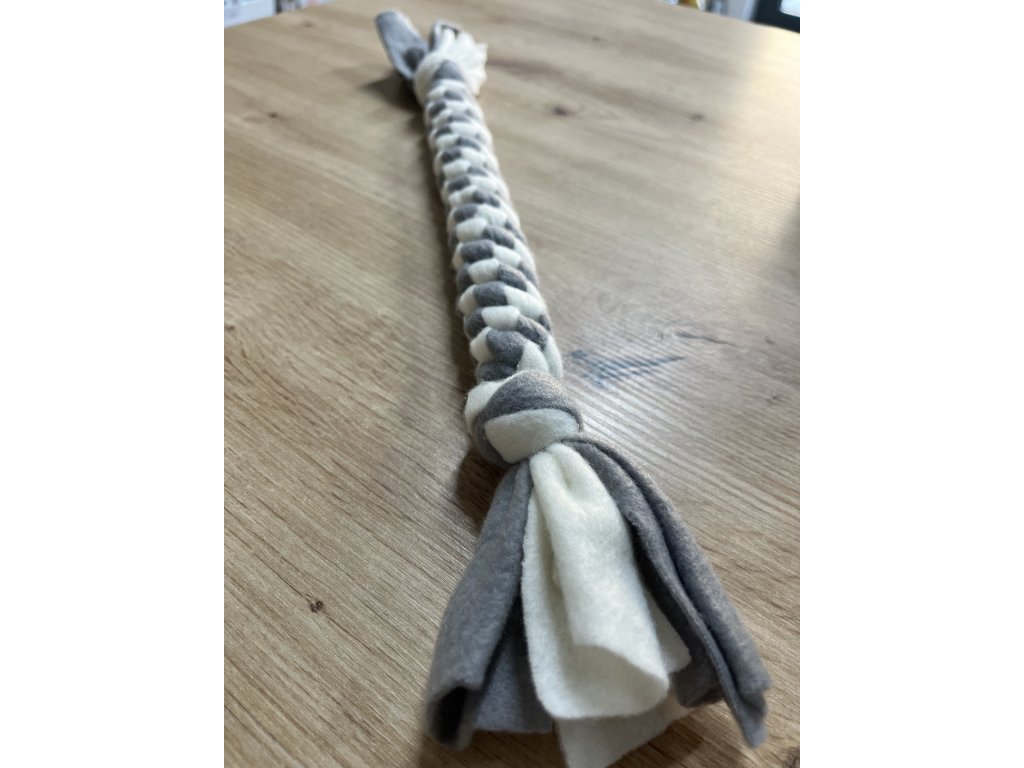 Hebký, ale odolný flísový provaz je skvělou hračkou pro psy všech věkových kategorií. Měkký materiál je jemný k zubům i dásním, takže si ho zamilují i štěňata nebo psí senioři. Ručně pletený cop o délce 35 cm se hodí na přetahování, aport i mazlení.