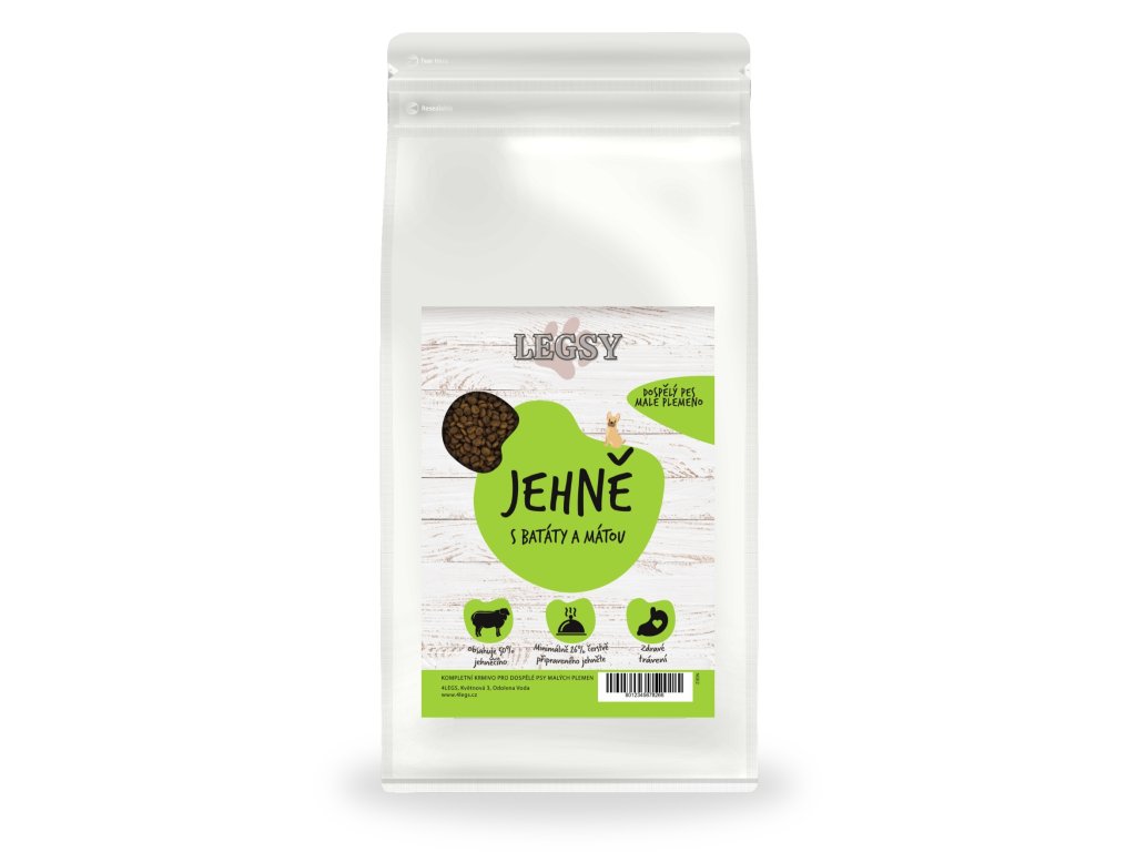 Granule LEGSY pro dospělé psy malých plemen s jehněčím, batáty a mátou obsahují 50 % jehněčího masa, z toho 30 % čerstvě připraveného.
