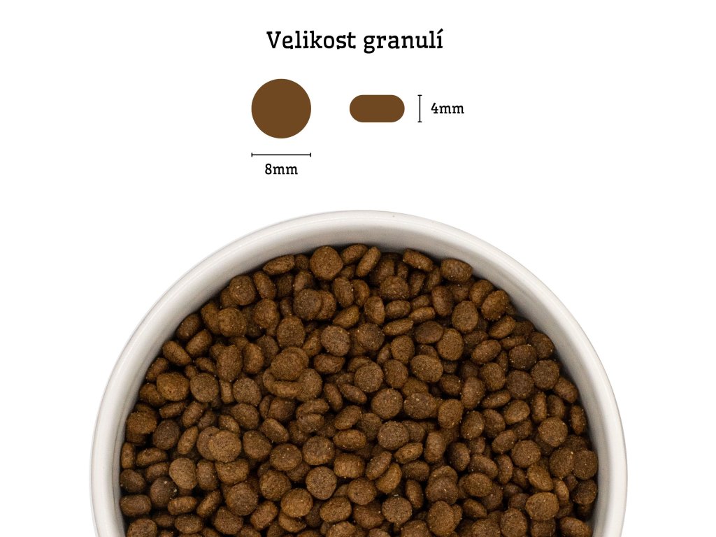 Omega 3 mastné kyseliny pečují o zdravou kůži a srst, prebiotika MOS & FOS podporují zažívání.