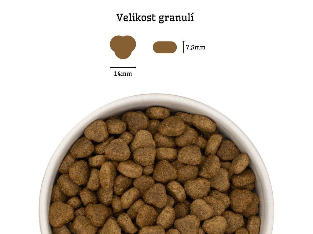 granule s optimální velikostí a křupavou strukturou (14 × 7,5 mm)