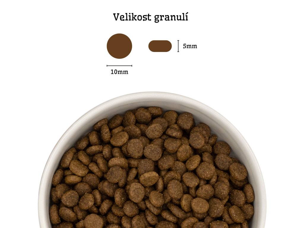 Granule mají optimální velikost a křupavou strukturu, přizpůsobenou dospělým kočkám.