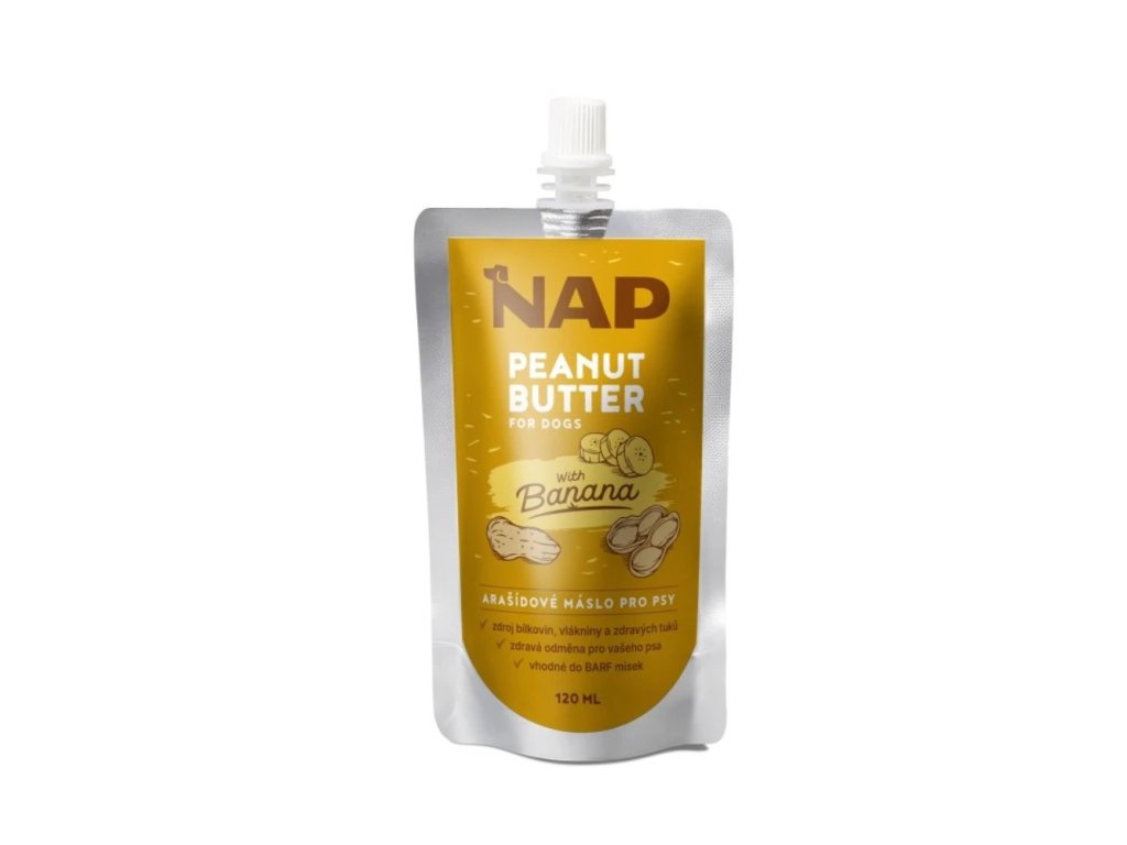 NAP arašídové máslo je chutné a výživné, ideální pro tréninkové chvíle, či jako odměna po procházce. V kombinaci s lyofilizovaným banánem nabízí dokonalou rovnováhu chutí a výživy.