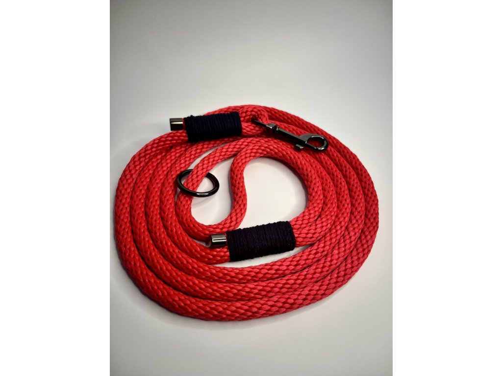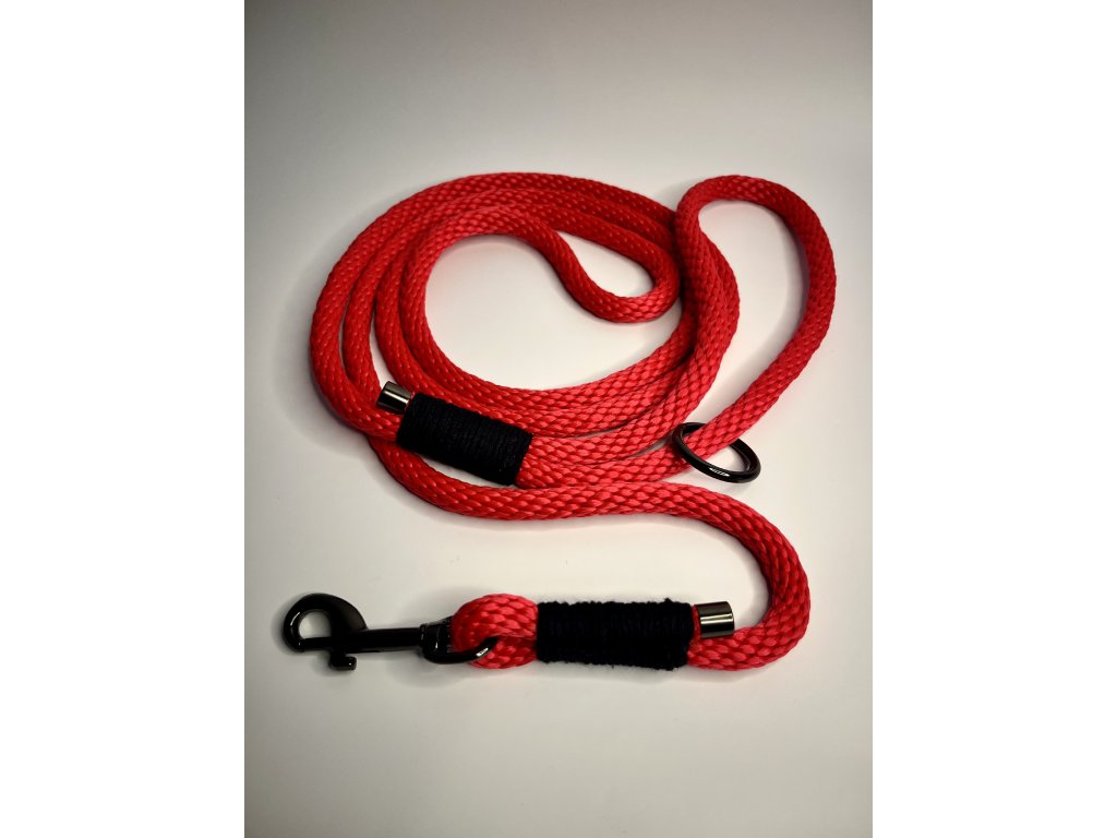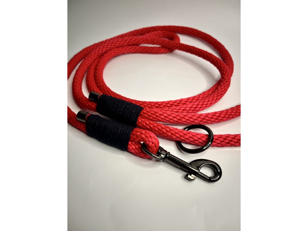 Ručně vyrobené provazové vodítko v červené barvě, délka 200 cm. Pevné, lehké a pohodlné do ruky.